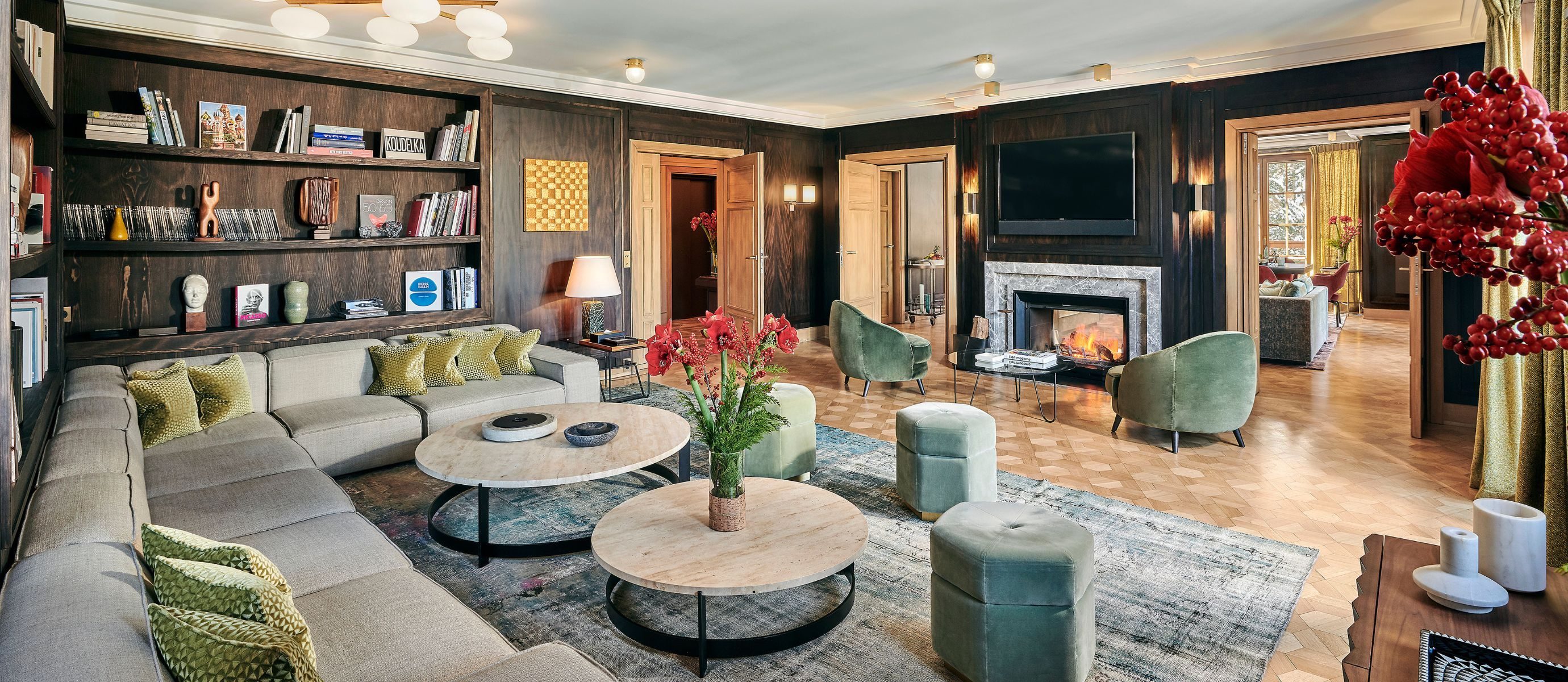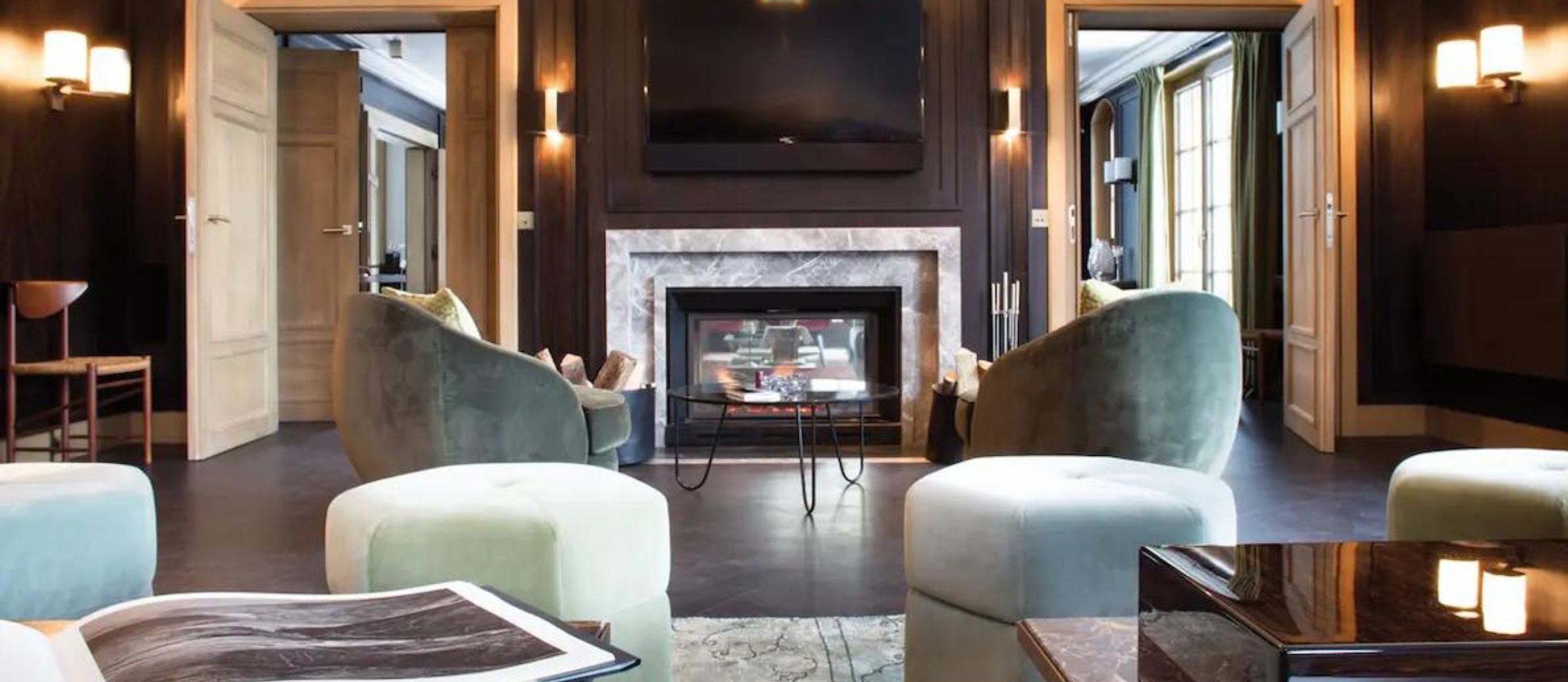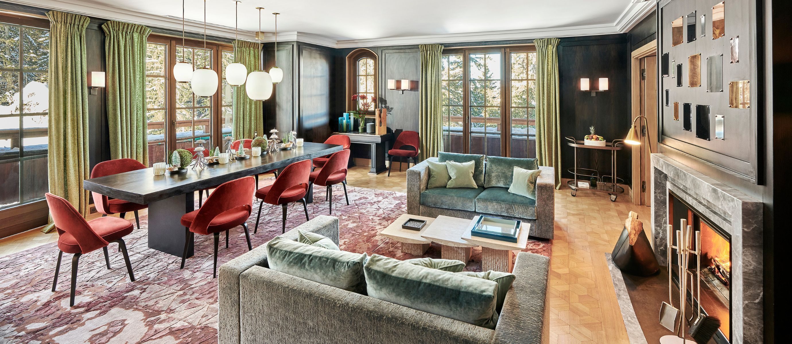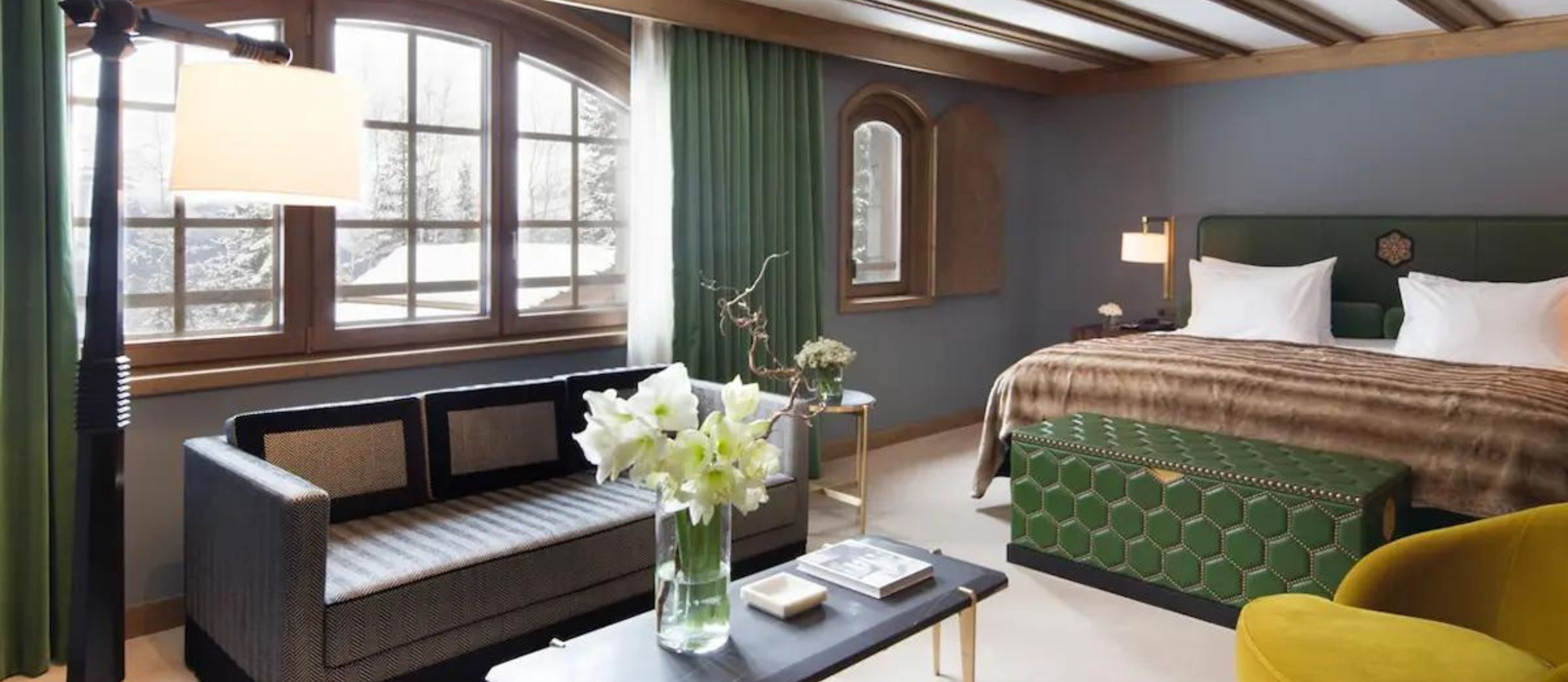 The chalet is extraordinarily spacious, offering 5,920 square feet of discreet luxury. Its five bedrooms and seven bathrooms are all finished in a modern, colourful style by celebrated Parisian designers India Mahdavi and Joseph Dirand. They even designed the lift.