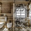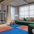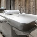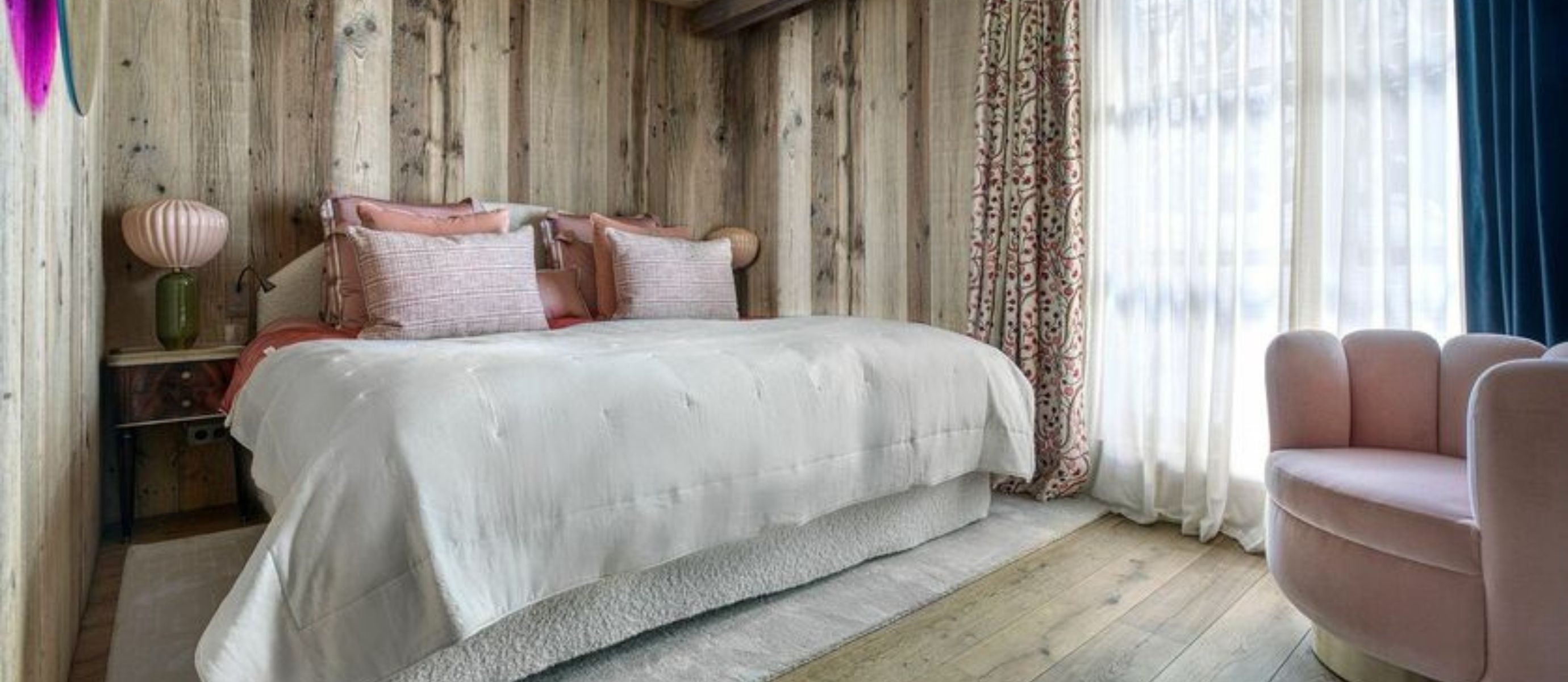 The interior is lined with raw wood and offers a synthesis of the ancient and the modern. The mountain style is present, awakened by a palette of bright colours inspired by the paintings of Claude Monet.