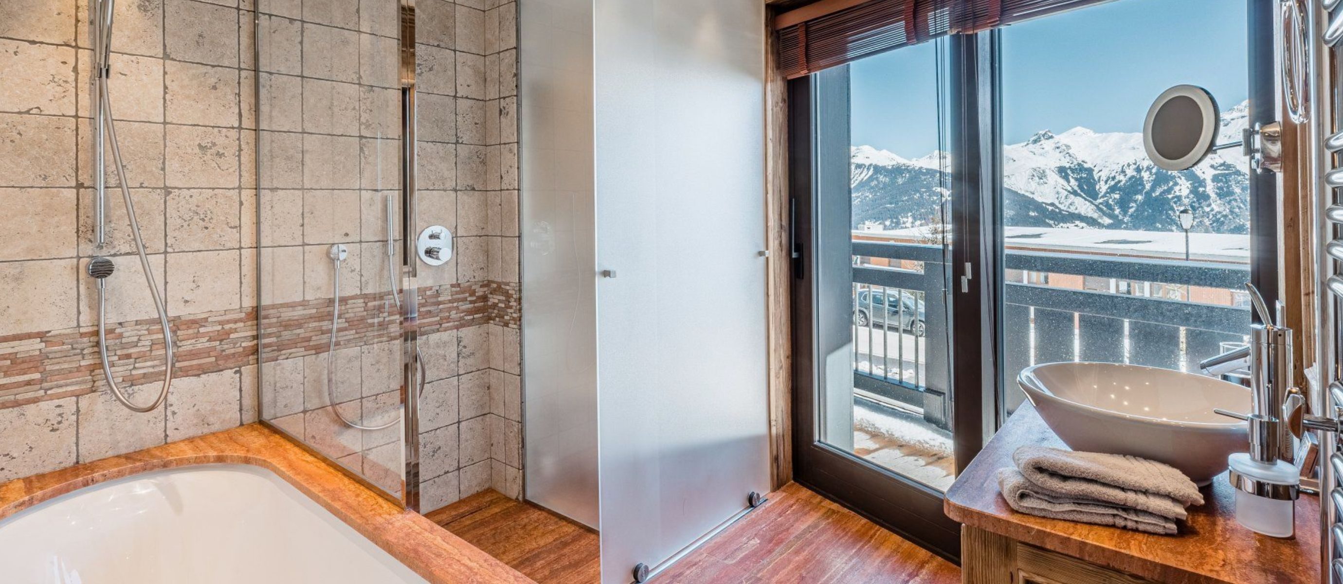 The center of Courchevel 1850 is 400 meters away, where you can enjoy a multitude of shops, boutiques, restaurants and clubs, supermarkets, the Le Forum shopping center, banks, and other services.