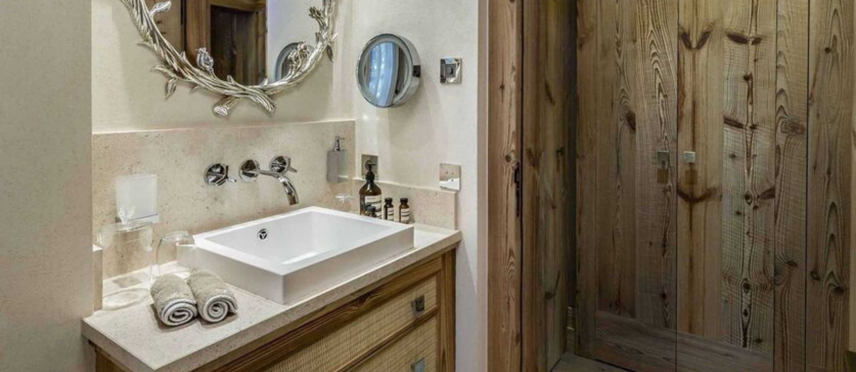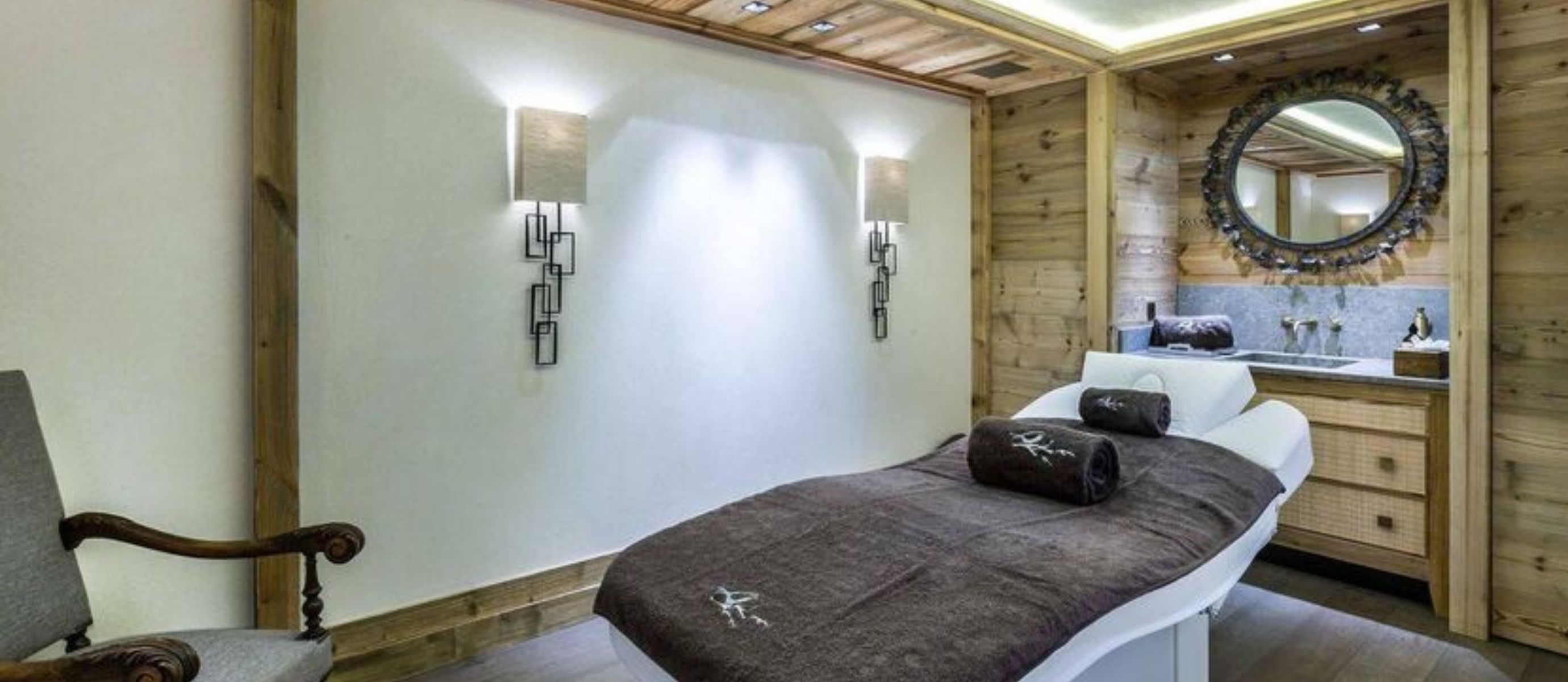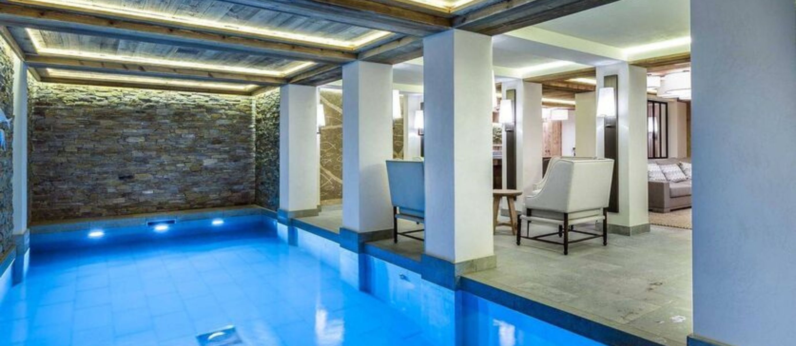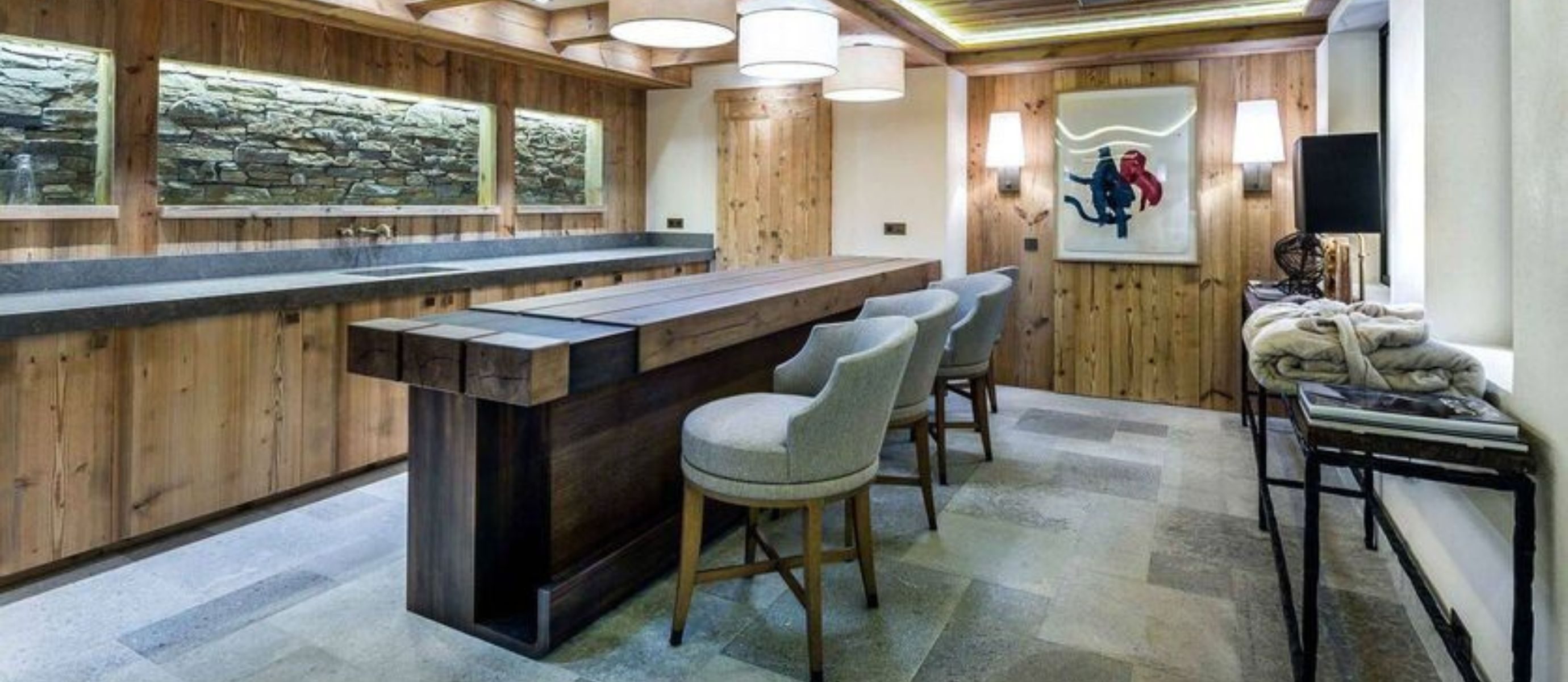 With its unique style, Les Bastidons is a wonderful example of the French art of living. The layout and decor were entrusted to one of the biggest names in interior design, Christophe Tollemer, who chose to retain the chalet’s traditional features, including old wood and natural stone, adding classic pieces of furniture, such as Louis XV armchairs in the lounge. Each of the chalet’s different areas exudes elegance and warmth, even the swimming pool which opens onto a second lounge. The chalet is home to an incredible staircase, where different metals intertwine to create foliage for decorative birds.